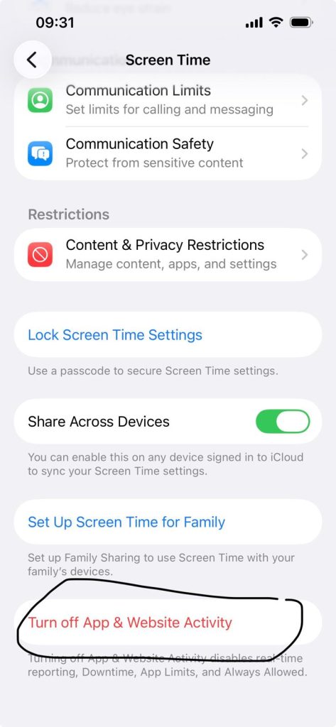 - Turn Screen Time off,